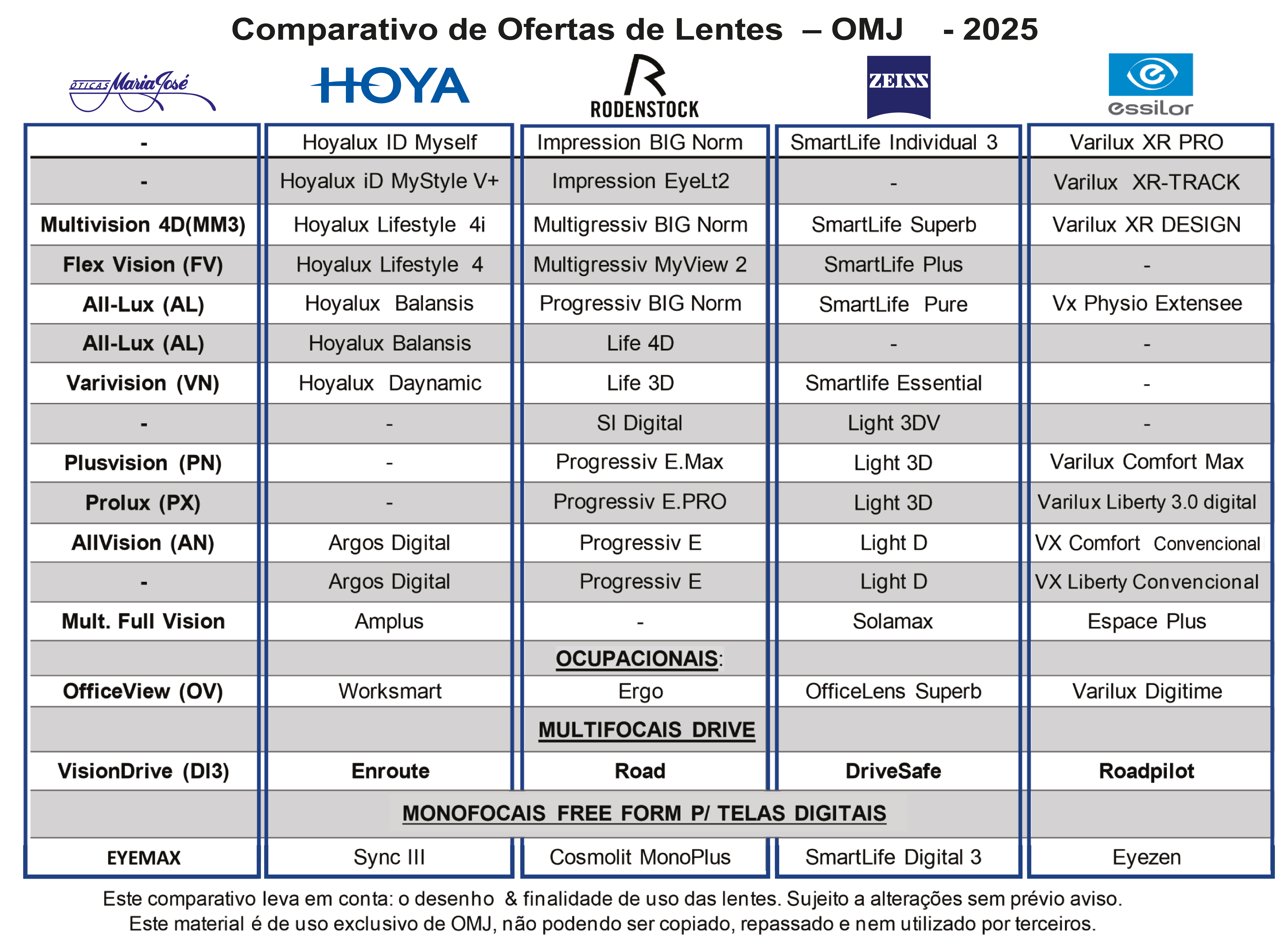 OPÇÕES DE LENTES EXCLUSIVAS FREE FORM